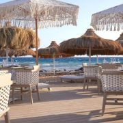 Собствен, пясъчен. Чадъри, шезлонги, матраци и плажни кърпи на плажа и при басейна - безплатно.