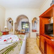 Junior Suite - Просторна стая с балкон, изглед към градината или басейна, двойно легло king size или две отделни легла. Други удобства: разтегателен диван в зоната за сядане, баня с душ, климатик, телефон, хладилник, сейф, сешоар.