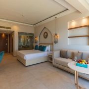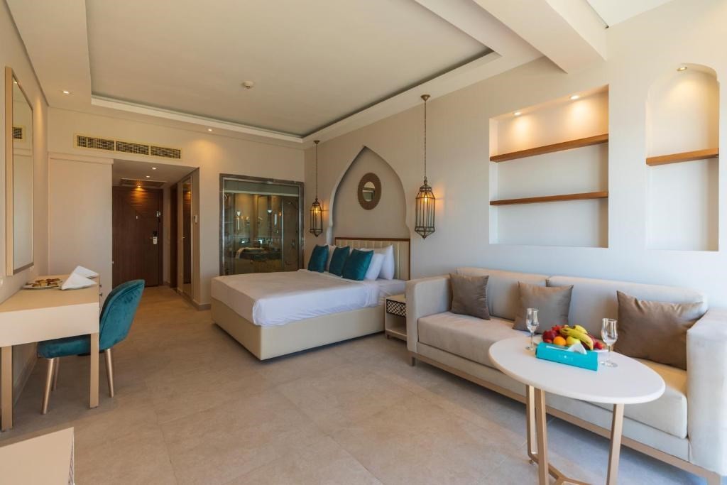На територията на хотела: Хотелът разполага с 8 ресторанта, от които 1 основен Shahrzad с интернационална кухня и 7 алакарт ресторанта (Gamila с арабска кухня, Frida с мексиканска кухня, Basilico с италианска кухня, Manohar с индийска кухня, Chimichurri с грил кухня, Mai Thai с азиатска кухня, Felucca с морска кухня) и 6 бара (лоби бар, 3 бара при басейна, бар на плажа, шиша бар), открити басейни, СПА център, конферетни зали.