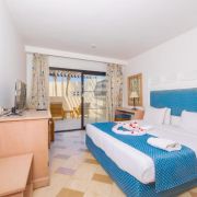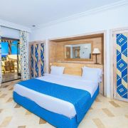 Deluxe (small junior suite) – с балкон с изглед към морето, басейна или градината, двойно легло king size, баня с душ, телефон, минибар, сейф, сешоар.