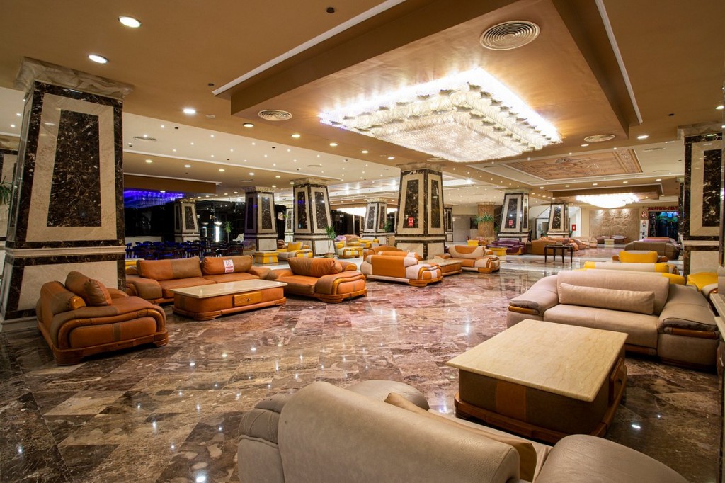 На територията на хотела: Основен ресторант Blue Lagoon, 2 а - ла - карт ресторанта, 4 бара - лоби бар Сфинкс (10:00-01:00), Дайкири бар край басейна (10:00-17:00), снек-бар на плажа, ориенталско кафене (18:00-01:00),  открит басейн (с подгряване през зимния период), неотопляем аква парк през зимата за възрастни и деца (3 пързалки за възрастни и 3 пързалки за деца, работно време: 10:00-12:00, 14:00-16:00) Wi - Fi (безплатно - в лоби).