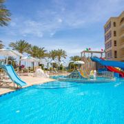 Намира се на 17 км от летище Хургада, 11 км от центъра на града, на самия бряг на морето. Състои се от основна 5-етажна П-образна сграда (6 асансьора). Обща площ: 12 000 м2.
