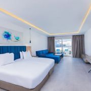 В стаите: Хотелът разполага с общо 318 стаи, от които 227 Deluxe room (за седмичен престой се полага 30 минути безплатна парна баня, сауна джакузи еднократно), 37 Premium room (за седмичен престой се полага 30 минути безплатна парна баня, сауна джакузи еднократно), 49 Elite rooms (за седмичен престой се полага 60 минути безплатна парна баня, сауна джакузи еднократно) и 5 Executive suites. Всички стаи са оборудвани с балкон или тераса, климатик, затъмняващи завеси, 65 инча LED телевизор със сателитни канали, ютия и дъска за гладене (по заявка), сейф, минибар, машина за кафе и чай, сешоар, аксесоари за баня.