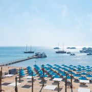 Плаж: Собствен, пясъчен пред хотела. Чадъри, шезлонги и матраци на плажа и при басейна - безплатно. Бар на плажа.