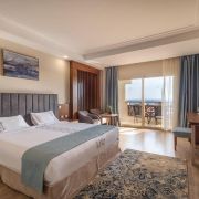 В стаите: Хотелът разполага с общо 551 стаи, от които 355 Standart room  (45 м2), 95 Premium room (45 м2), 60 Deluxe room (с изглед към море – 45 м2), 28 Family room (57 м2), 8 Executive suite (с изглед към море – 98 м2). Всички стаи са оборудвани с климатик, телевизор, телефон, баня с душ, сешоар, сет за чай/кафе, минибар (вода и безалкохолни напитки), сейф (безплатно), балкон. Почистване на стаите и смяна на кърпи - всеки ден, смяна на спално бельо - 2 пъти седмично.