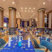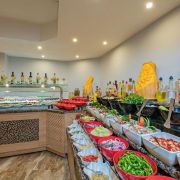 За деца: Хотелът разполага с отопляем през зимата детски басейн с площ от 315 кв.м., аквапарк с 16 детски пързалки, предназначени за гости с ръст 120 см., детски клуб за деца от 4 до 12 години (под наблюдението на родители). наблюдение), детска дискотека от 20:30 до 21:15, детска площадка и бебешка кошара по заявка (безплатно). Ресторантът предлага детски столчета и бюфет.