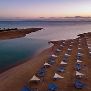 Собствен пясъчен плаж със залив и 3 плувни басейна, включително 1 за деца с чадъри, шезлонги с матраци, плажни огради за защита от вятъра, обслужване от бара, спасители на басейна и на плажа, кърпи за плажа и басейна, табели около басейна;