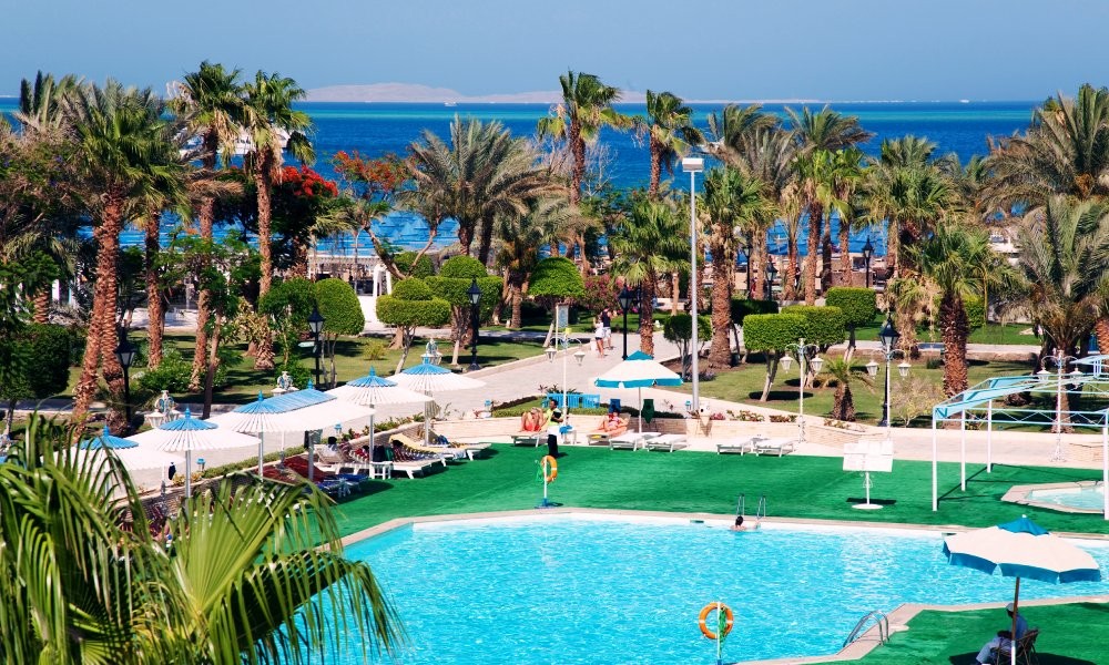 Разположение: Наскоро реновирани, но запазващи традиционния си чар, ниските блокове на Grand Hotel заемат първокласно местоположение в сърцето на модерния курортен район на Хургада. Хотелът има зашеметяващи градини и широк пясъчен плаж. Намира се само на 1,2 км от летището на Хургада и на 7 км от центъра на града.