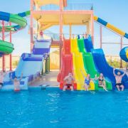 На територията: Основен ресторант който предлага храна специално и за деца. 2 големи открити басейни. Детски басейн. Слънчева тераса. Частен плаж на първа линия. Голяма градина. Фитнес център и Спа с ралзични уелнес пруцедури. Турска баня. Място за съхраняване на багаж. Различни анимации за деца и възрастни(вечерни прорами, анмфи театър и аниматури/детогледачки). Детска площадка. Игрална зала-дартс, билярд. Хотерът също предлага трансфери до летището.
