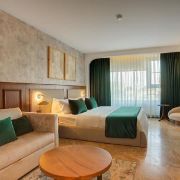 На разположение на гостите са 43 стаи, които са оборудвани с балкон, климатик, сет за кафе и чай, мини хладилник, баня с душ, сешаор и тоалетни принадлежности.