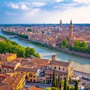 Отпътуване от летище София с директен полет на "Wizz Air" или "Ryanair" до Бергамо/Венеция. Отпътуване за Верона. Пешеходна разходка на Верона: Арена ди Верона - един от най-добре запазените римски амфитеатри в Европа; площад "Бра" - най-големият площад на Верона и един от най-просторните и внушителни в цяла Италия; Къщата на Жулиета; площад "Деле Ербe" - старият римски форум; площад "Синьория" - аристократичният площад на Верона; "Понте Пиетра" - най-старият мост над р. Адидже; църквата "Св. Анастасия" - най-голямата църква във Верона; Катедралата - смесица от романски и готически архитектурни стилове; "Кастелвекио" - замък, запазил следите от управлението на фамилия Висконти, венецианците, французите и австрийците. Настаняване в района на Верона. Нощувка.