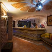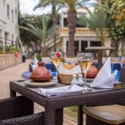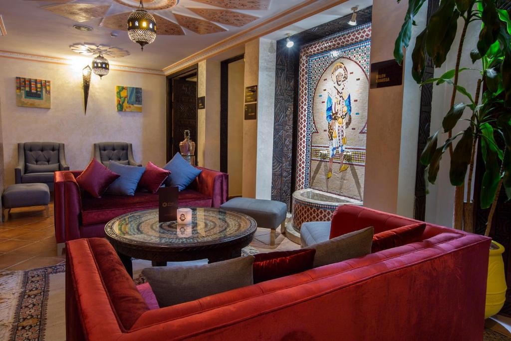На територията на хотела: Khimissa Restaurant- сервира обядите и вечерите в хотела а-ла-карт или на блок маса, предлага изискана Мароканска кухня- морски специалитети, Таджине, леща Khlii. Вторият ресторант, Le Jad сервира закуска на блок маса. Басейн с бар, лоби и нощен бар, безплатен паркинг.