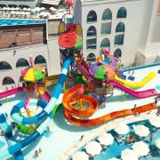 Основен ресторант "Санторини", 4 а-ла-карт ресторанта (рибен, турски, италиански и азиатски (платен - с предварителна резервация ), 2 снек ресторанта, 6 бара, аква бистро (срещу заплащане), дискотека, витамин бар, сладкарница, уличка на вкусотиите, инфинити кафе, открит инфинити басейн, закрит басейн, аквапарк (6 000 кв. м. - басейн с вълни, 2 басейна с пързалки, детски басейн, 22 пързалки) от 01.05 до 30.09, СПА център, магазини, паркинг.