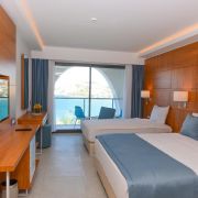 Хотелът разполага с общо 330 стаи, от които Promo Room Garden View (25-30 m²), Standart Room Garden View (25-30 m²), Standart Room Sea View (25-30 m²), Large Garden View Room (1 спалня и единично легло - 35-40 m²), Large Sea View Room (1 спалня и единично легло - 35-40 m²), Family Room (2 спални, 2 бани - 50-60 m²). Всички са оборудвани с климатик, телевизор, телефон, баня с душ, сешоар, сет за кафе/ чай, минибар (безплатен, зареждане всеки ден), сейф (безплатен), Wi-Fi, балкон. Почистване на стаите и смяна на кърпите – всеки ден, смяна на бельото – 2 пъти в седмицата.