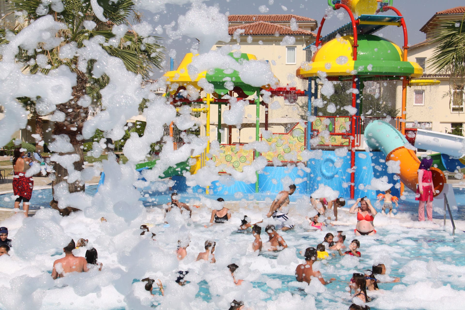 Основен ресторант, 2 бара, открит басейн, аквапарк, СПА център, телевизионна зала, магазини, конферентна зала, паркинг.