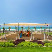Собствен, пясъчнeн, с дължина на плажната ивица 350м, притежаващ сертификат за „Син флаг“. Чадъри, шезлонги, матраци и плажни кърпи на плажа и при басейна - безплатно.